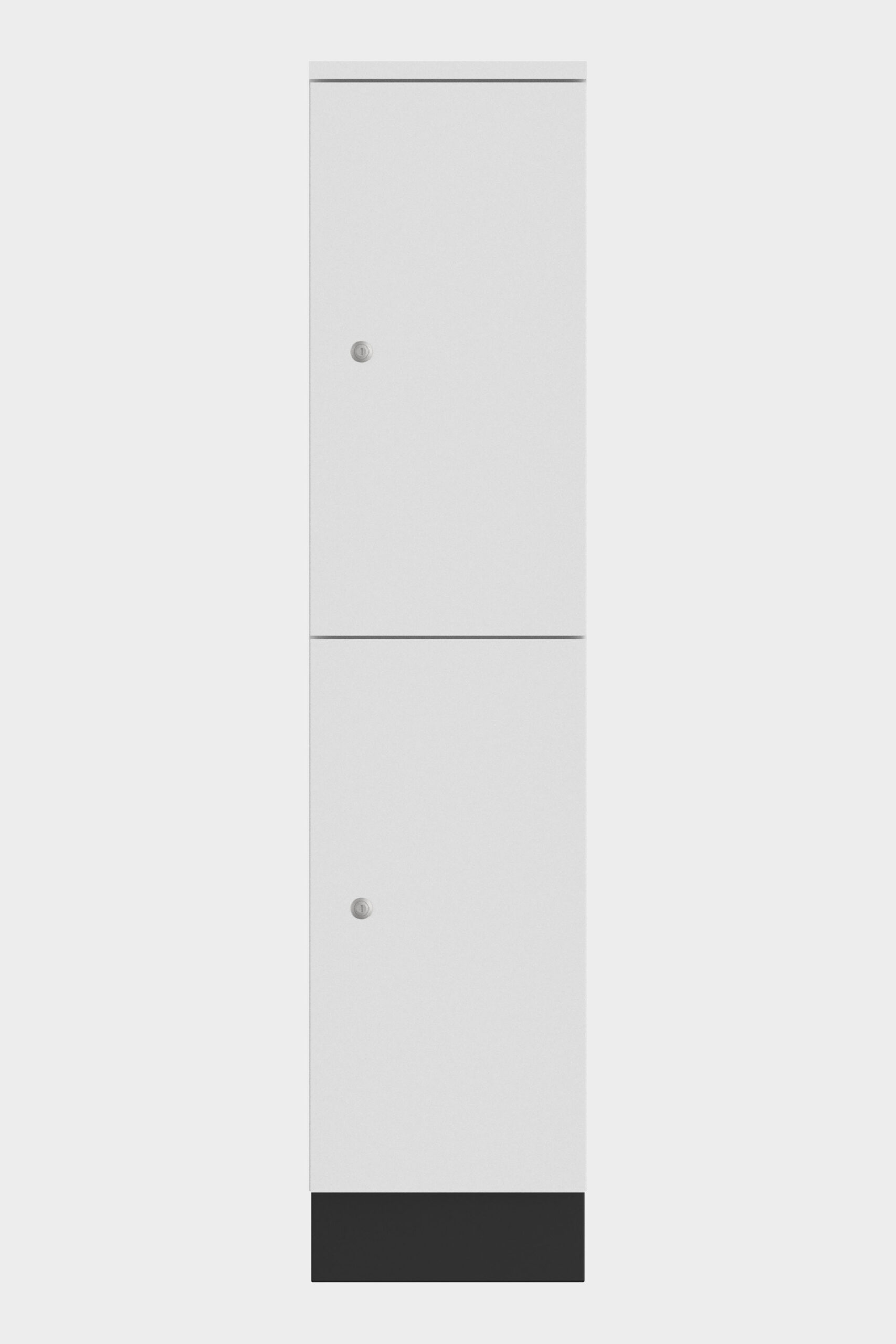 With its modest height of 132 centimetres locker Aquarius HVL helps to give a spacious feel to every interior. The body is finished in white. The doors are available as standard in white, black, light grey and dark grey. Doors and side panels are available for a supplement in approximately 100 different Pfleiderer wood decors and Pfleiderer uni colours. The models come with black metal plinths and adjustable feet.