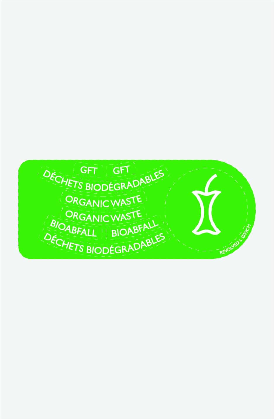 Put your own spin on waste management with the Revolved waste stream stickers. There are stickers for organic waste, general waste, plastic, paper, and deposit bottles and cans. The waste stream stickers are available for Revolved L and Revolved XL. The stickers are always delivered in 4 languages: Dutch, English, German, and French.