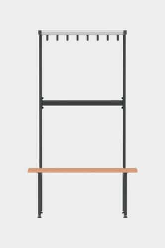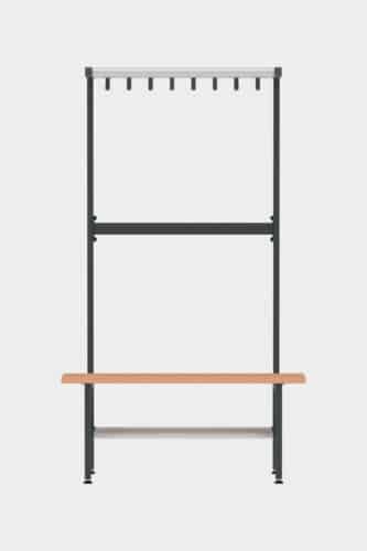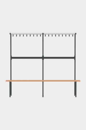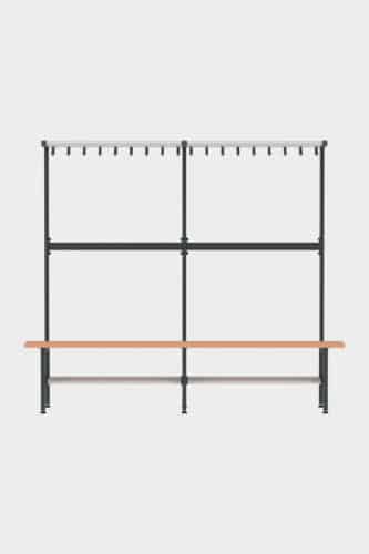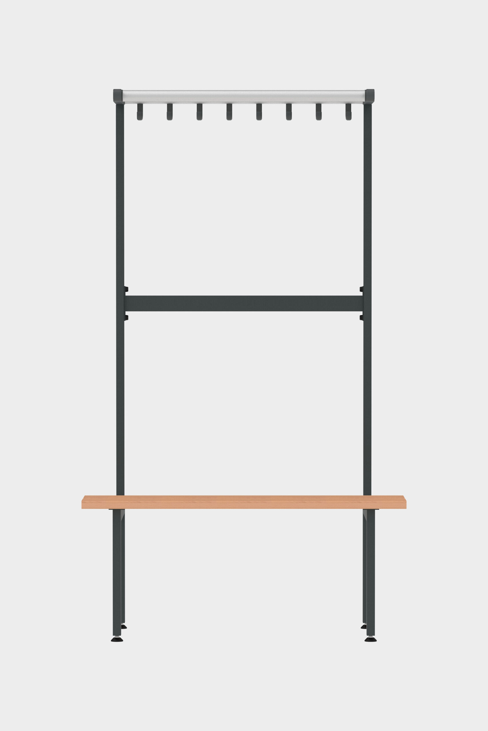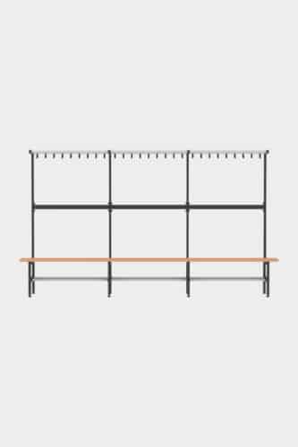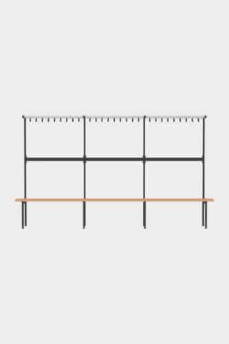 A cloakroom system and stylish bench in one: free-standing cloakroom bench Tertio BEV+ | BEVS+ has a seat and handy coat hooks and a bag rack. The sturdy steel components ensure a solid base. Tertio BEV+ | BEVS+ is part of the extensive Tertio cloakroom range, designed by Gerard Kerklaan. The various sizes of benches are particularly striking thanks to the characteristic powder coated steel frame in combination with the clear lacquered beech. Tertio BEVS+ is equipped with a shoerack.