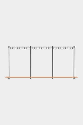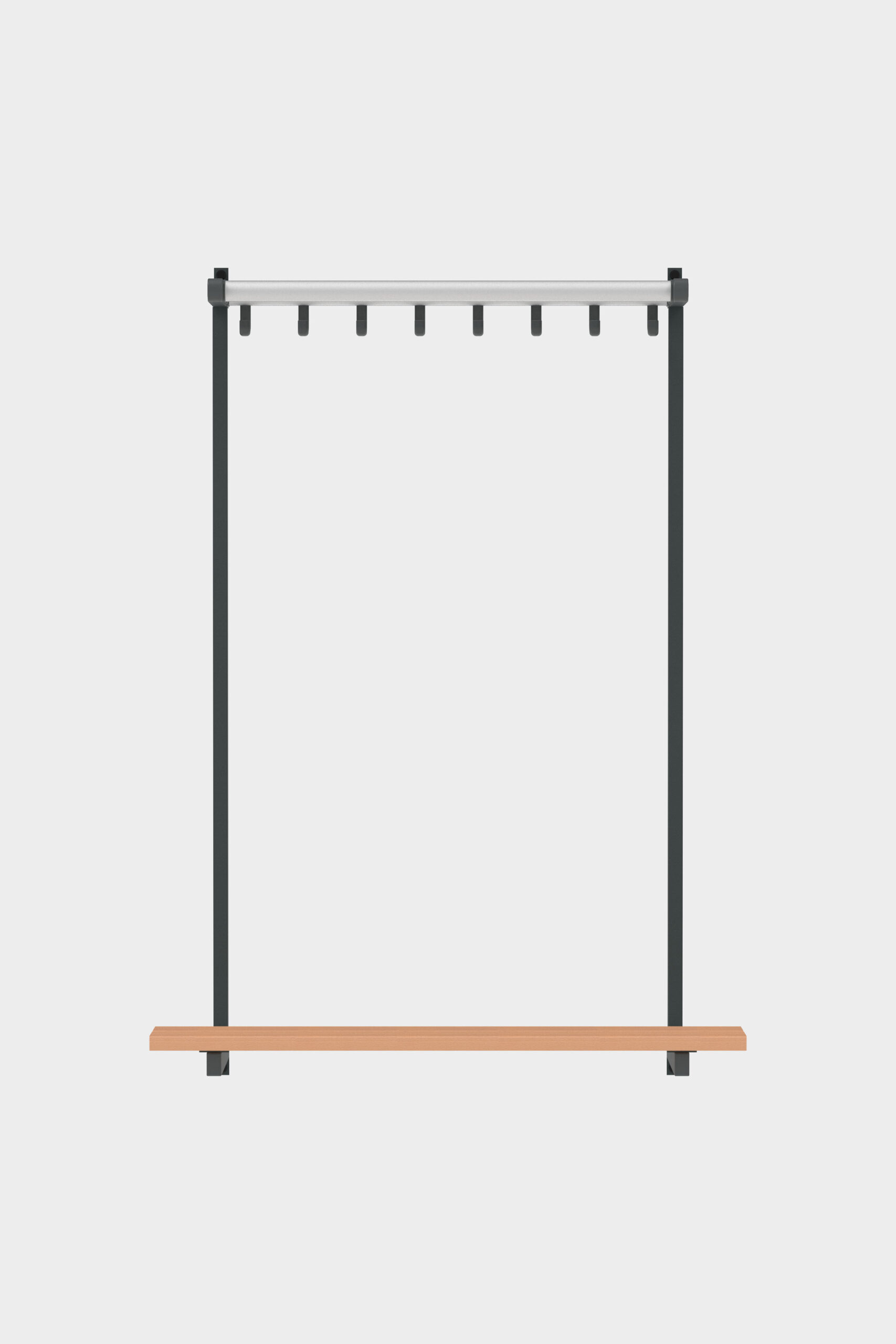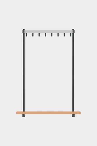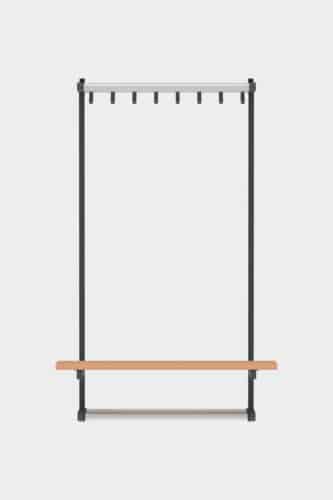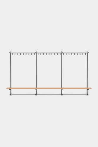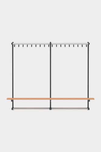 A cloakroom system and stylish bench in one: wall bench Tertio BEW+ | BEWS+ is equipped with handy coat hooks and a bag rack. Available as standard in lengths of up to 3 metres. Tertio BEW+ | BEWS+ is part of the extensive Tertio cloakroom range, designed by Gerard Kerklaan. The various sizes of benches are particularly striking thanks to the characteristic powder coated steel frame in combination with the clear lacquered beech. Tertio BEWS+ is equipped with a shoerack.