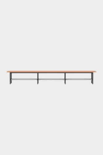 You can sit in style on the Tertio BV | BVS. The free-standing bench with steel frame is available as standard in lengths of up to 3 metres. Tertio BV | BVS is part of the extensive Tertio cloakroom range, designed by Gerard Kerklaan. The various sizes of benches are particularly striking thanks to the characteristic powder coated steel frame in combination with the clear lacquered beech. Tertio BVS is equipped with a shoerack.